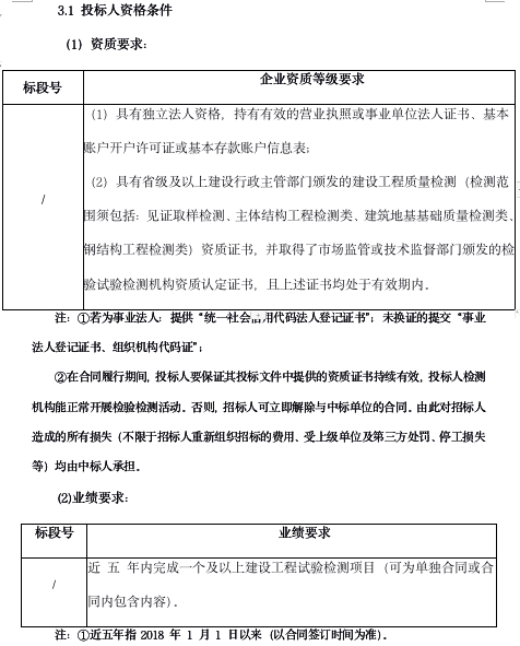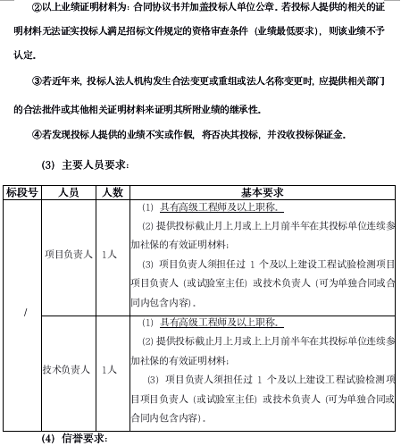 3.5 特殊资格要求:投标人为招标人资信库成员(试验检测类),若为联合体投标,则联合体牵头人和联合体成员须为招标人资信库成员。